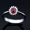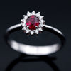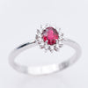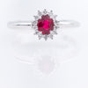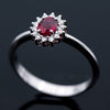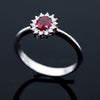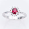ANELLO DONNA LEDY IN ORO BIANCO 18 CARATI CON RUBINO CENTRALE E CONTORNO DI DIAMANTI NATURALI