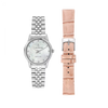 Colore cinturino: Silver; nella scatola è presente anche un cinturino in pelle rosa con un cacciavite che permette di cambiare cinturino in base all’occasione e all’outfit